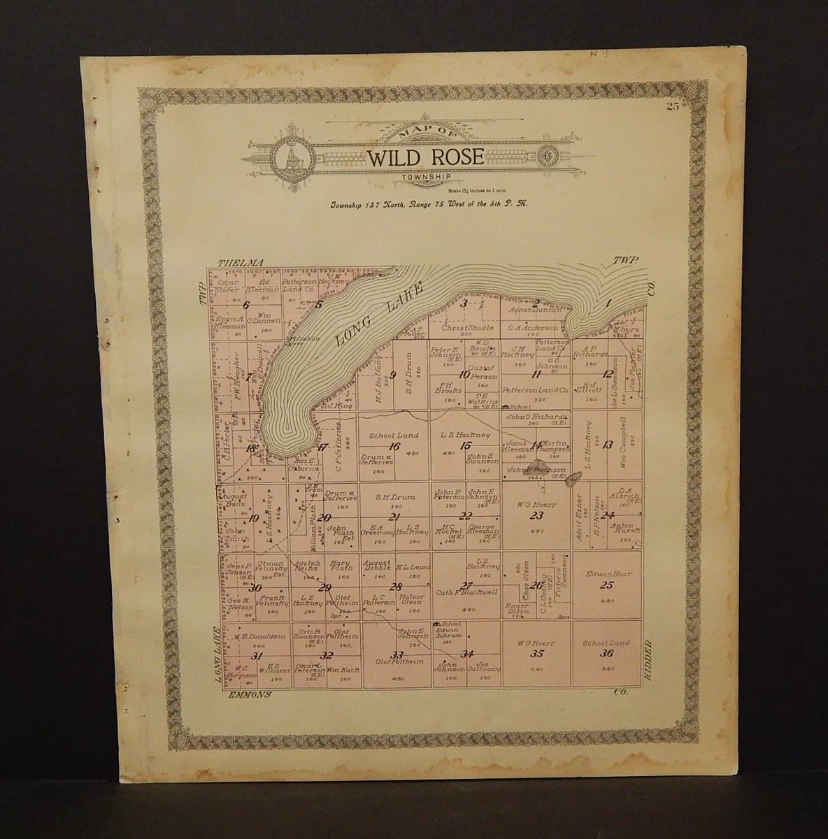 North Dakota Burleigh County Map Wild Rose Township 1912 Q8#30 | eBay