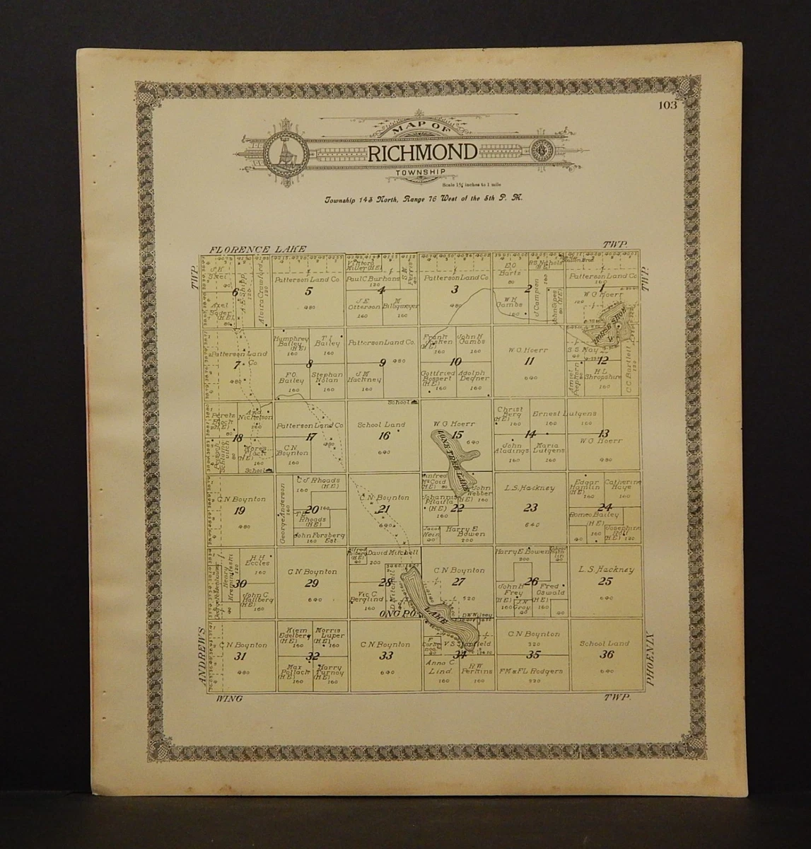 North Dakota Burleigh County Map Richmond Township 1912 Q7#92 | eBay