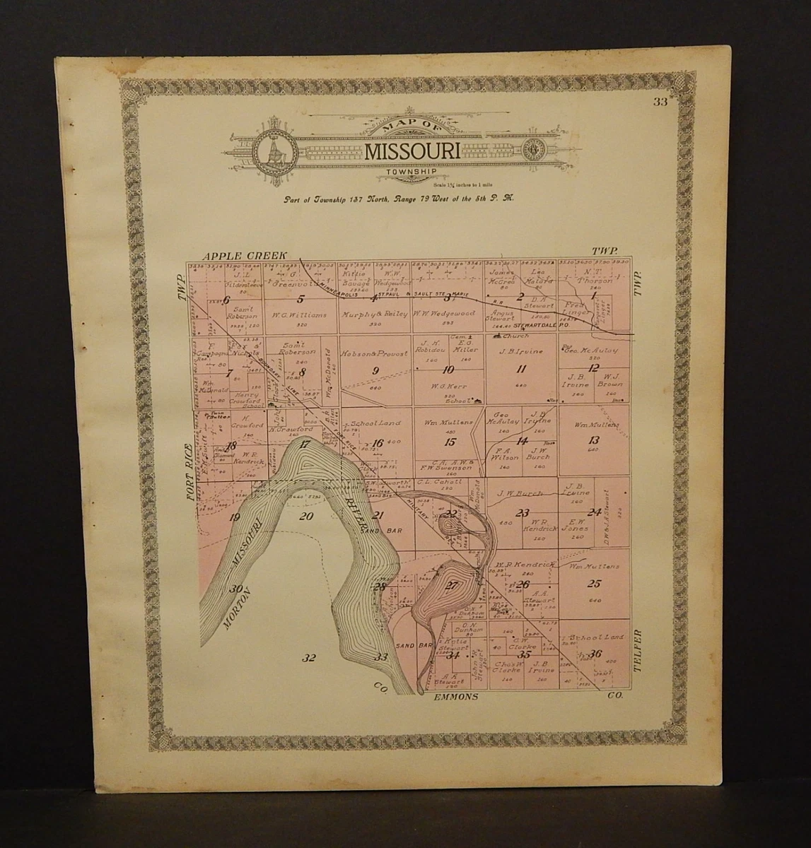 North Dakota Burleigh County Map Missouri Township 1912 Q8#26 | eBay